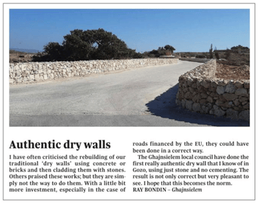 Reconstruction and restoration of traditional rubble walls in rural areas of Malta and Gozo, using local stone and authentic methods, including projects awarded through public tenders.