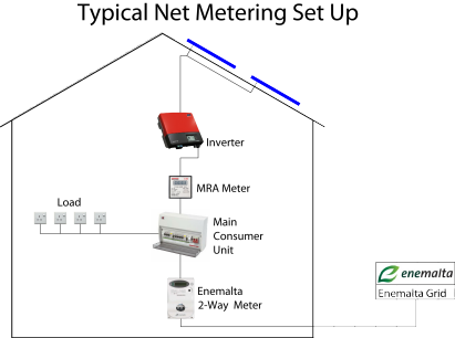 Our systems include a two-way meter that performs dual functions. It records the amount of electricity consumed from Enemalta’s supply and also tracks the surplus electricity fed back to the grid. In this way, Enemalta deducts the electricity 'sold' by the household from its total bill. If you generate more electricity than you consume, Enemalta compensates you at the current Feed-in Tariff rate.